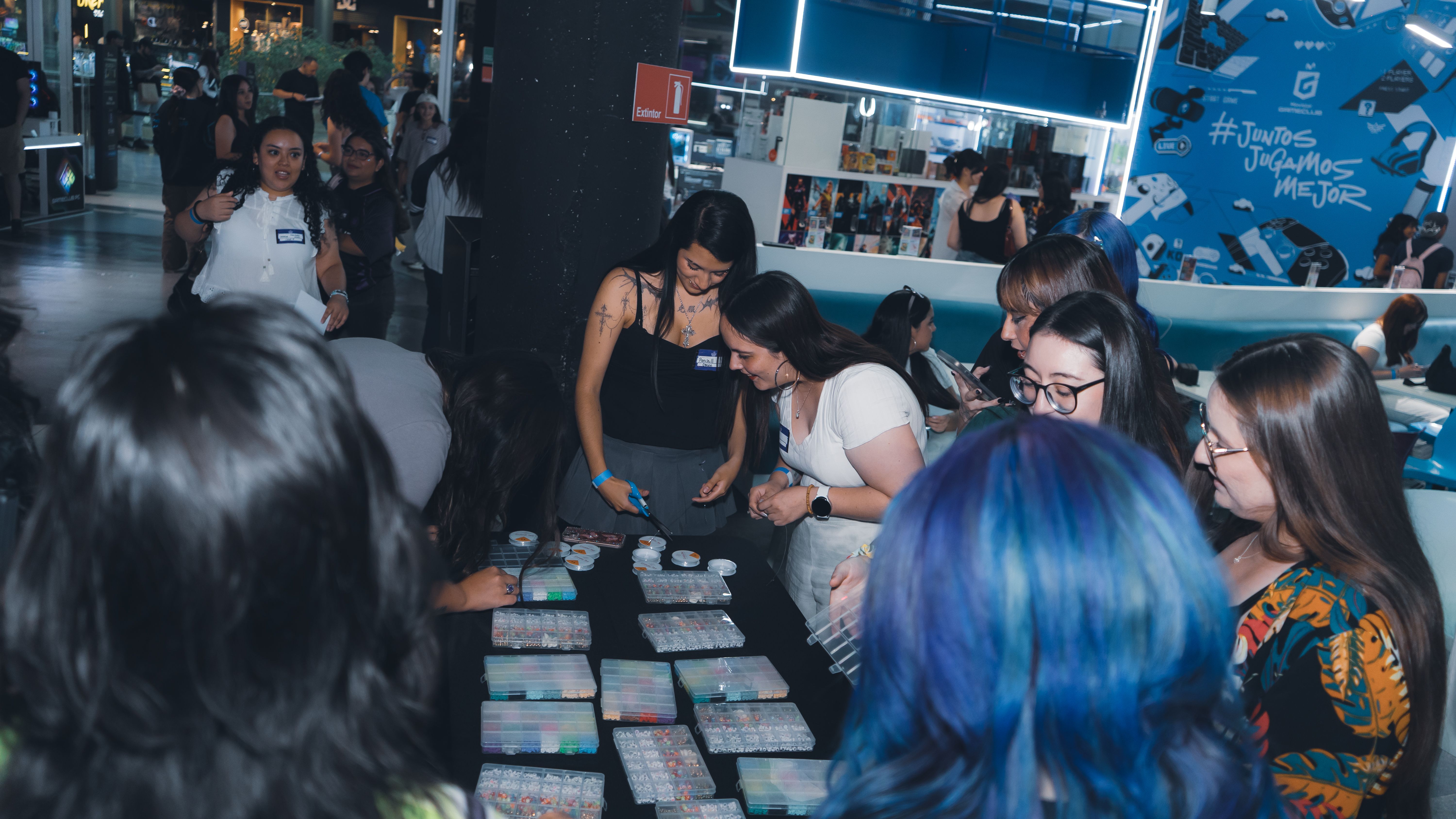 Además, el evento contó con distintos stands y actividades, como un taller de personalización de camisetas, confección de pulseras de la amistad, Free to Play en nuestra Zona GameClub PC y un juego estilo “bingo”, donde las asistentes debían encontrar a personas que cumplieran con las características presentes en sus cartas.